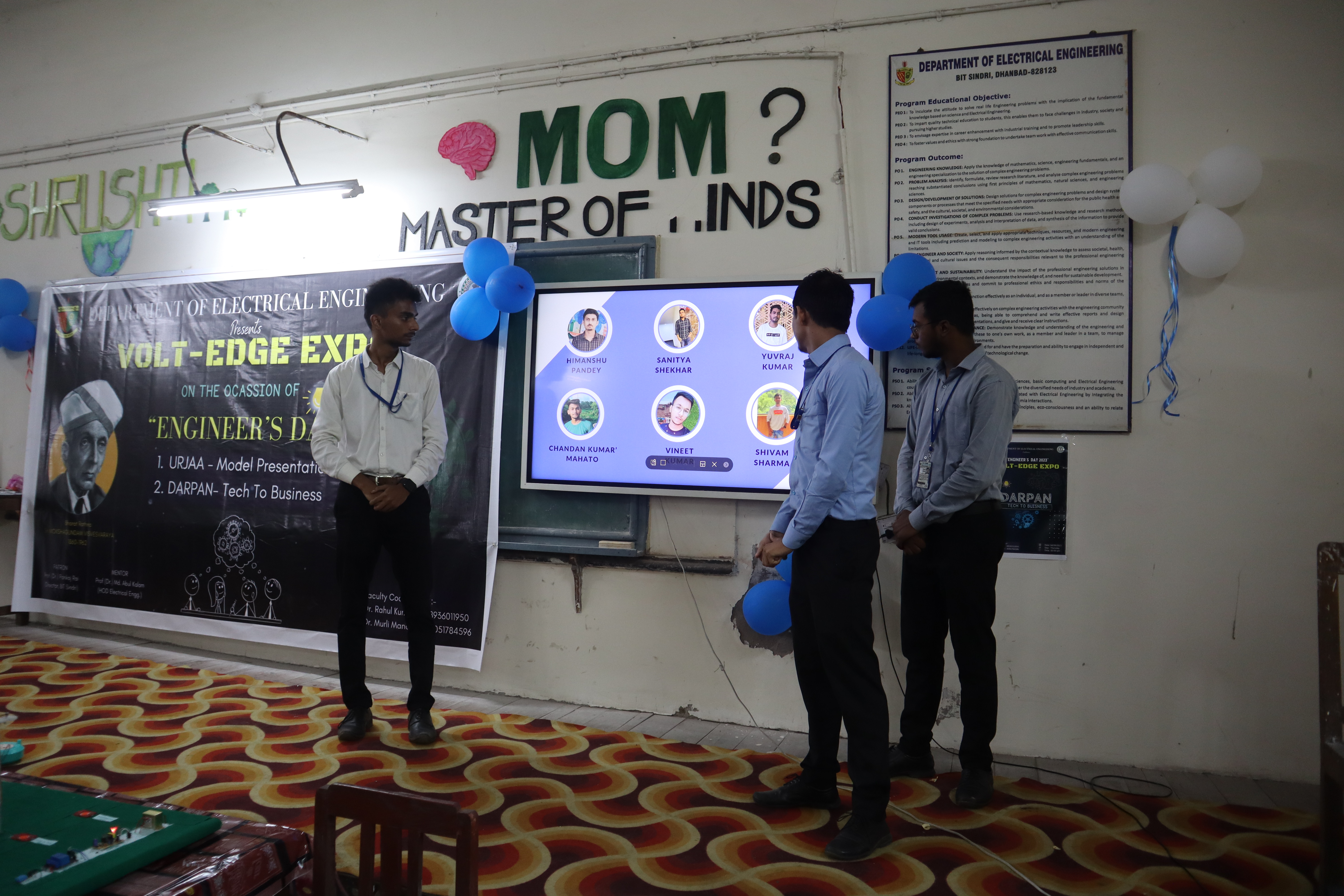 "Darpan" was the business model presentation competition where students showcased their innovative ideas for startups. The competition was open to all the students in the Electrical Department. The theme of the event was igniting innovation in the world of business startups. Students were required to exhibit their ideas and present the business PPTs in front of the judging panel. There was active participation from students from different years. The main aim of Darpan was to connect technology to business, empower young minds to reflect and showcase their ideas, and give wings to their dream of becoming entrepreneurs.